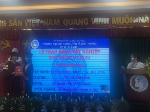 Sáng ngày 8/10/2022, Trường Đại học Tài nguyên và Môi trường TP. Hồ Chí Minh (HCMUNRE) trang trọng tổ chức Lễ Trao Bằng tốt nghiệp Thạc sĩ, Đại học chính quy đợt 2 năm học 2021-2022. Trong buổi Lễ hôm nay, Trường có 29 Tân Thạc sĩ và 880 Tân Kỹ sư, Tân Cử nhân đủ điều kiện nhận Bằng Tốt nghiệp. Sự nỗ lực sau bao ngày tháng luyện rèn trong môi trường HCMUNRE đã được đền đáp bằng sự rạng rỡ trên từng khuôn mặt khi các em khoác trên mình chiếc áo Thạc sĩ , Kỹ sư, Cử nhân cùng gia đình và bạn bè.